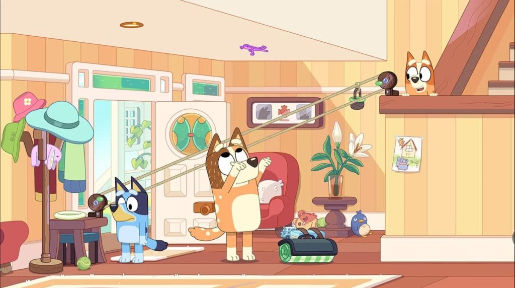 You want a look at something truly maddening.  Take any day, or activity in Bluey’s life.  The best way to describe it would be out of control.  While holding the leash very firmly.  And a look at season one, episode 30 may explain who is teaching Bluey – with aims at teaching children – some new tricks.
