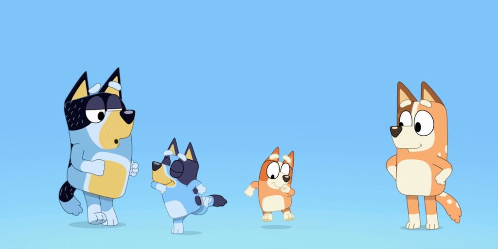 Each episode of Bluey begins with an introduction of the Heeler family during a game of musical moves.  It’s kind of like musical chairs, except there are no chairs.  Instead Bluey, parents Bandit (dad) and Chilli (mom) as well as little sister Bingo dance like no one is looking until the song stops.  You may find yourself catching the itch.  No need to call a vet, there are much worse doghouses to lay in than the Heeler’s.