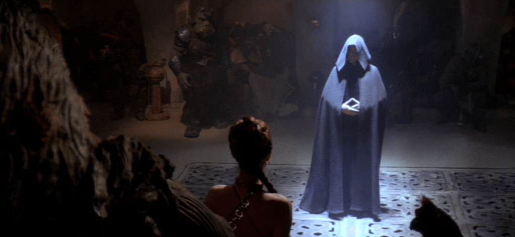 While Luke does follow Obi-Wan’s instruction to travel to Dagobah to begin training with Yoda, he later disregards both Jedi’s advice by deciding to leave before it can be completed. Instead, he rushes to the final requirement – a confrontation with Vader – before he was prepared to complete it successfully. Lucky for Luke his impulsiveness doesn’t cost him his arms and legs like his father. And while he regains his hand thanks to cybernetics, I’m more interested in Luke’s other upgrade he mentions when we first see him as a holographic projection from R2-D2 in 1983’s Return of the Jedi. One that he expects will cut Jabba down quicker and make the negotiation of Han Solo’s release short.
