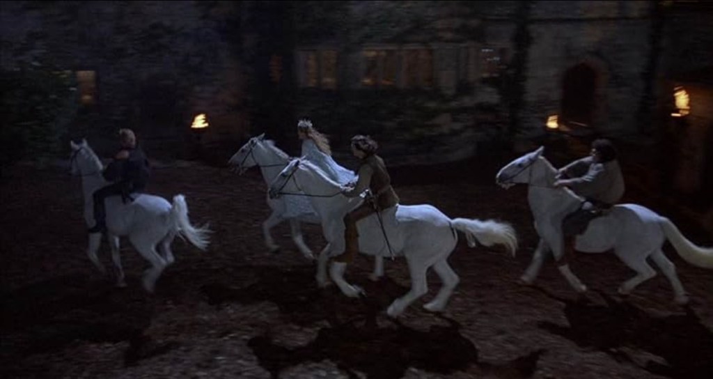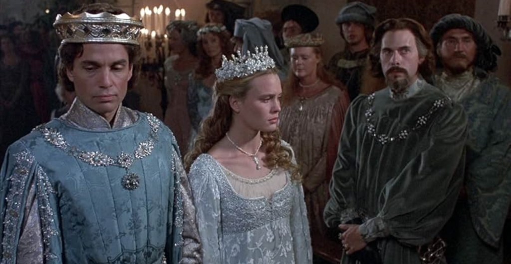 On the other end of the spectrum is Prince/King Humperdinck, who presents a dynamically different view of what love means. One sample is seen with how he deals with his father’s death, which Humperdinck casually addresses while going over battle plans with his general. For a war he is secretly orchestrating. While his initial scheme falls apart once Wesley rescues Buttercup from the hired Sicilian Vizzini, Humperdinck simply engineers another lie to provoke a war with the neighboring country of Guilder. Making his arranged marriage to Buttercup similar to Shrek’s Lord Farquaad – another fairy tale land ruler – a union of pomp and circumstance. Consistent with medieval customs, marriage afforded Humperdinck legitimacy in his authoritarian claim to the Florin crown. So love had nothing to do with it.