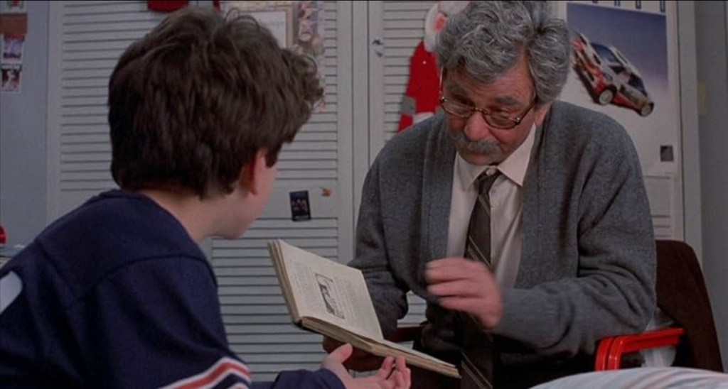 However, what happens next will likely make most kids of the 80’s remember our ideal sick day, back when Campbell’s soup was Mmmm, Good instead of a meme. Obviously the number one spot belongs to a blockbuster depicting the hilarious hijinks and exploits that most adults now call a “mental health”, or better yet a me day. Though since most of today’s employers and school administrators have also seen it, the movie is the reason most places require a doctor’s note for an excused absence. However, if you were indeed actually sick and not simply enjoying a day off like Bueller..Ferris Bueller, then the next best sick day consisted of a healthy dose of modern media to make you feel all better. But, as the disconnected, dual income families of those days know all too well, the nuclear household at times still needed to reach and re-connect to its roots. So even though he didn’t have to relocate to a vinyl covered couch and get wrapped up in a worn Afghan blanket like some of us, the look of disdain on Grandson’s face upon his guests arrival lets the audience know he is no longer comfortable in this environment. The day only got worse when, after receiving the cheek pinch he only moments ago predicted, the present the Grandfather offers isn’t the video game the wrapped package’s dimensions hinted at, but rather a storybook. Or “my day’s television” as Peter Falk’s Grandfather puts it.